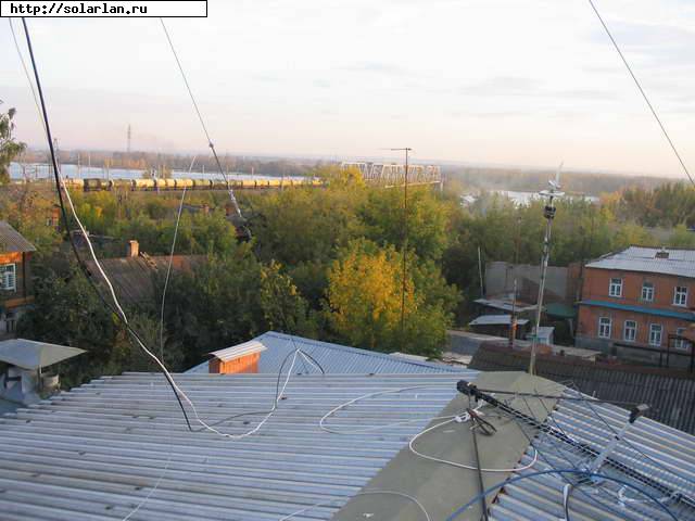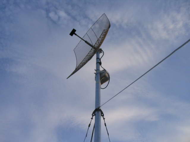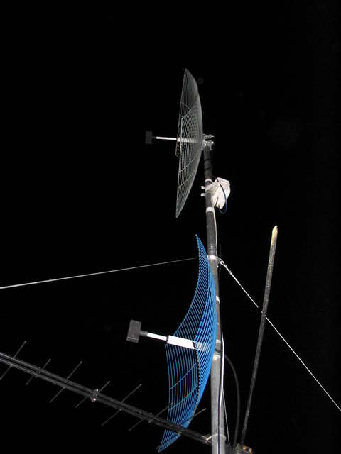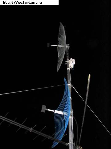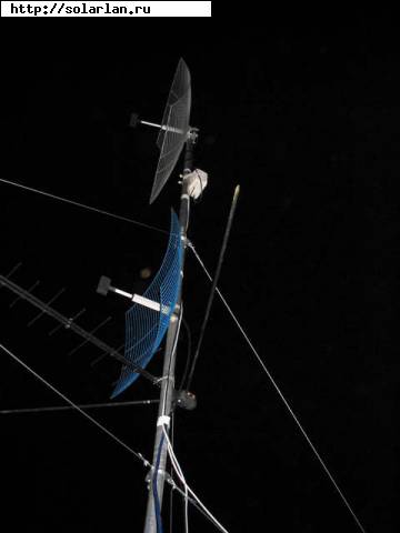 Еще фото ночью, уточнение: синяя антенна - на полярную звезду, ну и ниже дельта - на телевизор:)