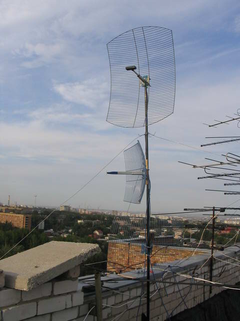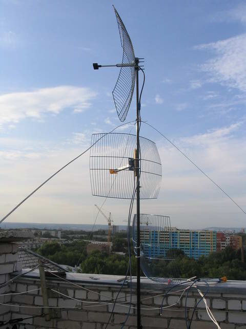 Закрепили антенны: Bester 27дб с облучателем bester и две Дунай 24дб с самодельными облучателями